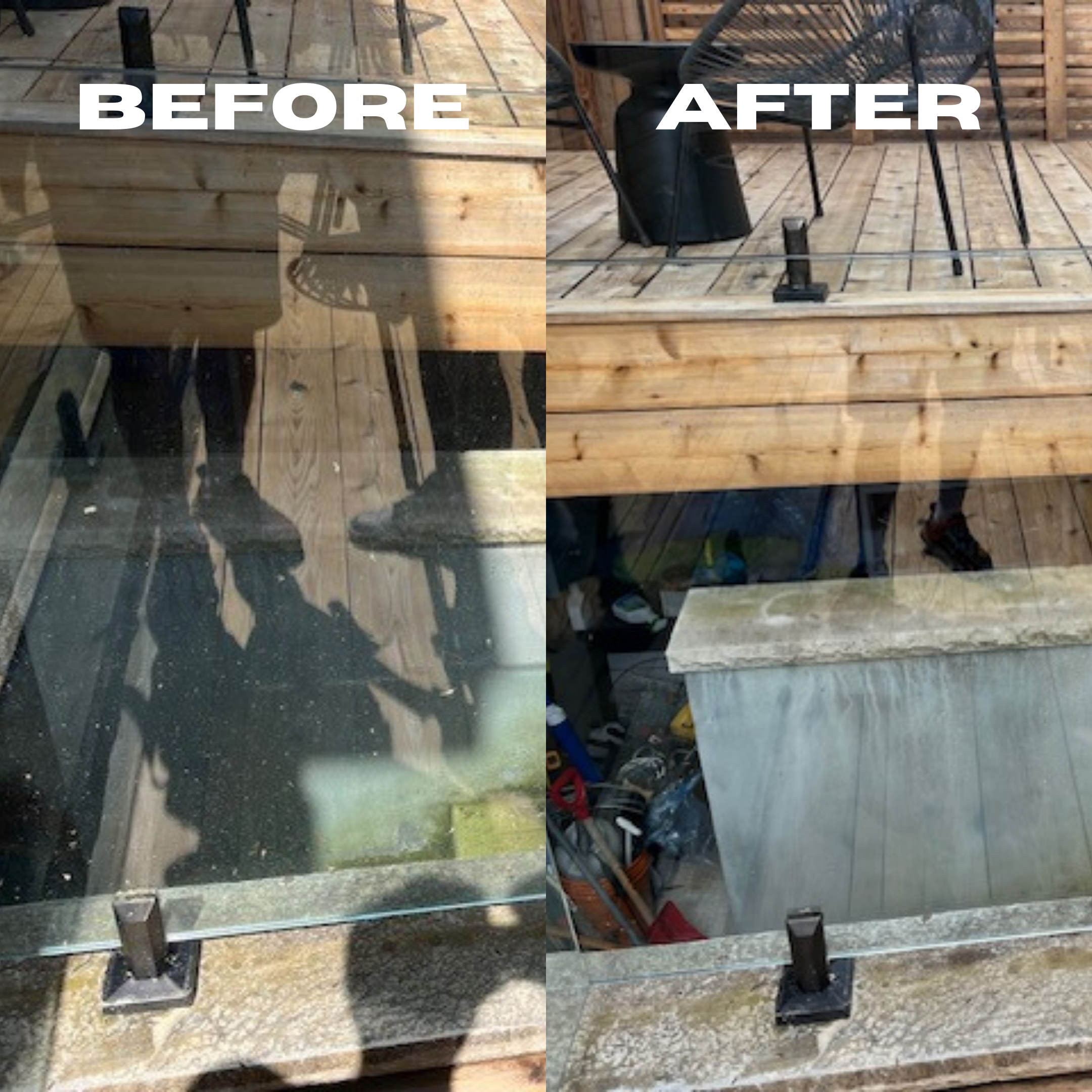 Leaside- It was time to say bye to years of built-up grime for this homeowner. Getting the layers off took several passes but finally we got that deck to shine!